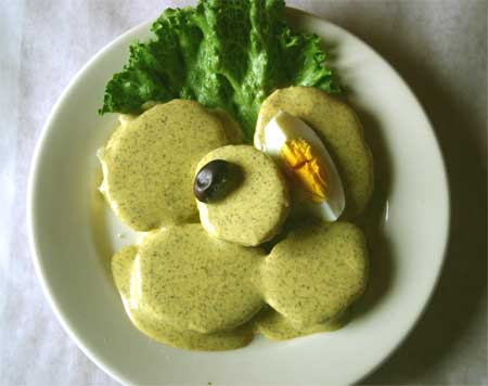 Es un plato típico e histórico de la cocina criolla peruana, compuesta por papa sancochada, bañada con salsa de ají molido, leche,galletas saladas, aceite y queso fresco. En su presentación clásica es acompañada por huevos duros, aceitunas negras y hojas de lechuga.I